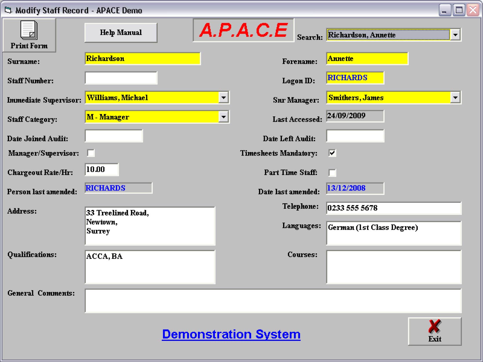 The key staff fields are as follows:-